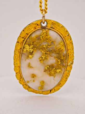 10k Yellow Gold pendant featuring a BIG 30mm x 21mm 16to1 Mine Gold Quartz specimen.